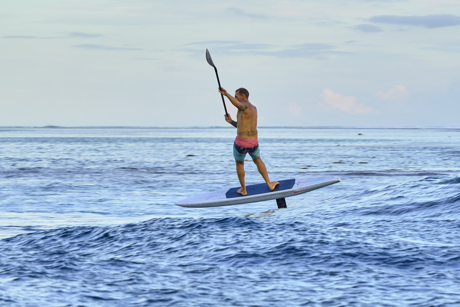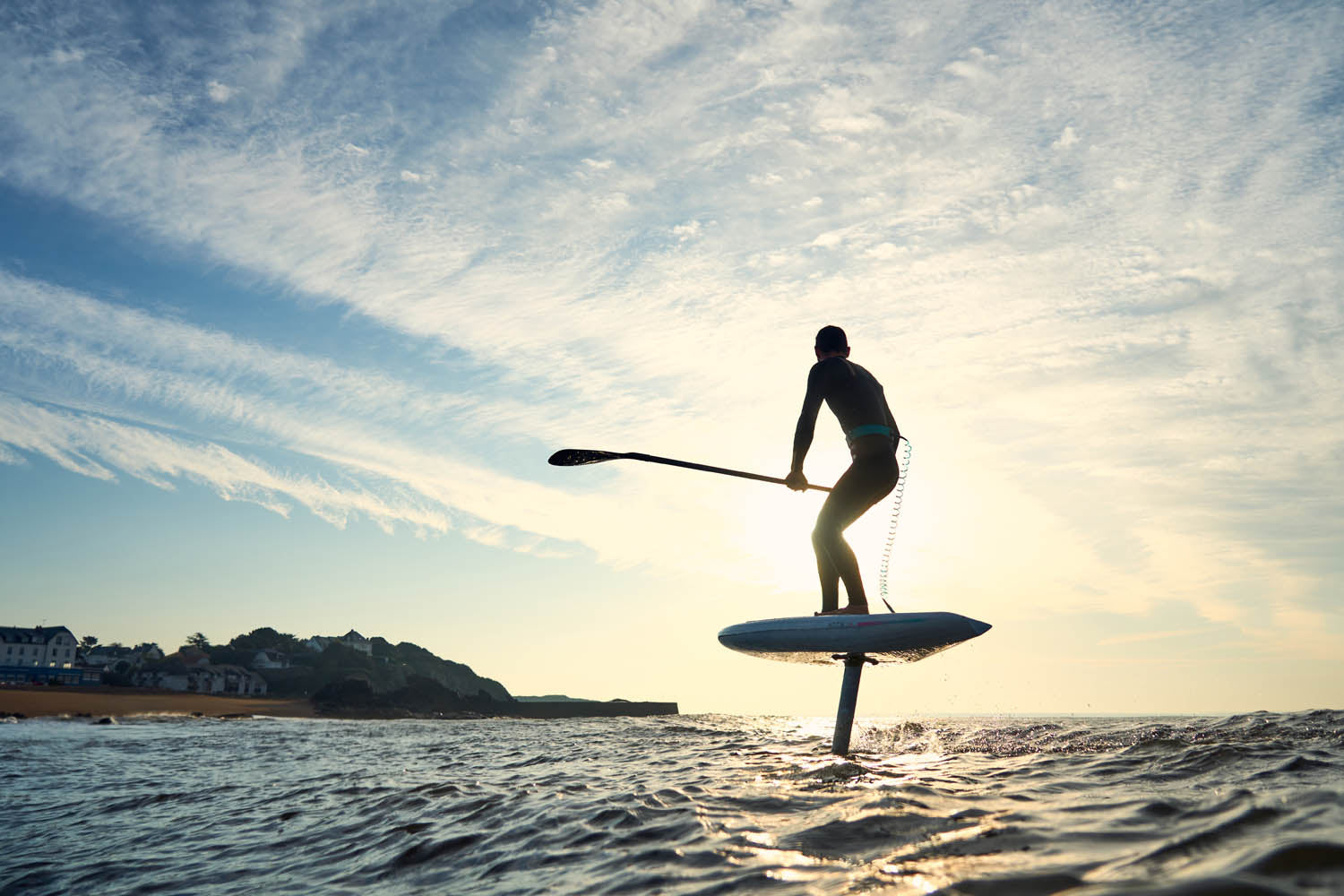 En surf/SUP foil, l’idéal est d’avoir une surface suffisamment petite pour tourner confortablement mais suffisamment grande pour avoir du confort au take off et au pumping.