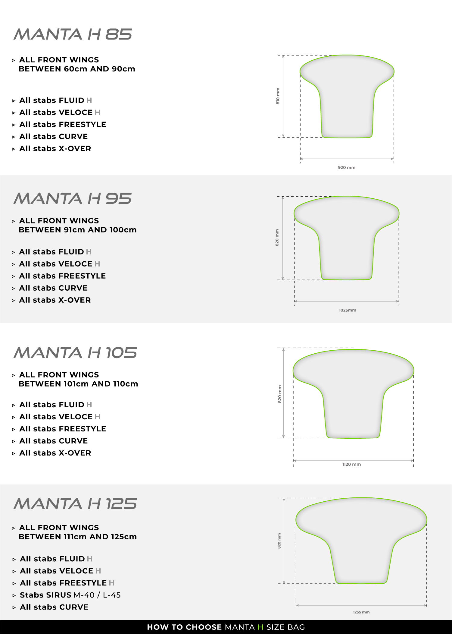 Les tailles indiquées sont les tailles maxi des ailes avant et vous pouvez vous référer au guide des tailles afin d’avoir l’ensemble des dimensions fonctionnelles.