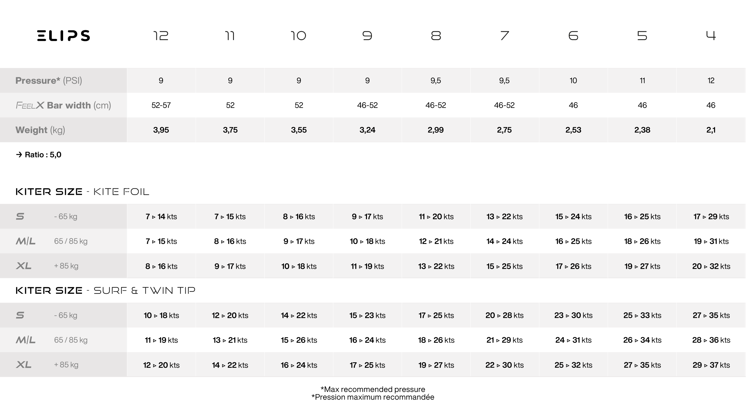 Ratio modéré ++ car désormais à 5,0 (vs 4,5) : plus de glisse, plus de finesse, plus de vitesse quand on le souhaite, tout en gardant un feeling très sain et linéaire dans toute la fenêtre. Avec sa surface recentrée, la Elips reste hyper stable au zénith, conserve un super drift et rattrape beaucoup d’erreurs. On gagne un kite qui s’extrait vite de la zone de puissance si on le souhaite et qui y retourne immédiatement à la demande. Une vraie mobilité dans la fenêtre de vol qui favorise le surf.