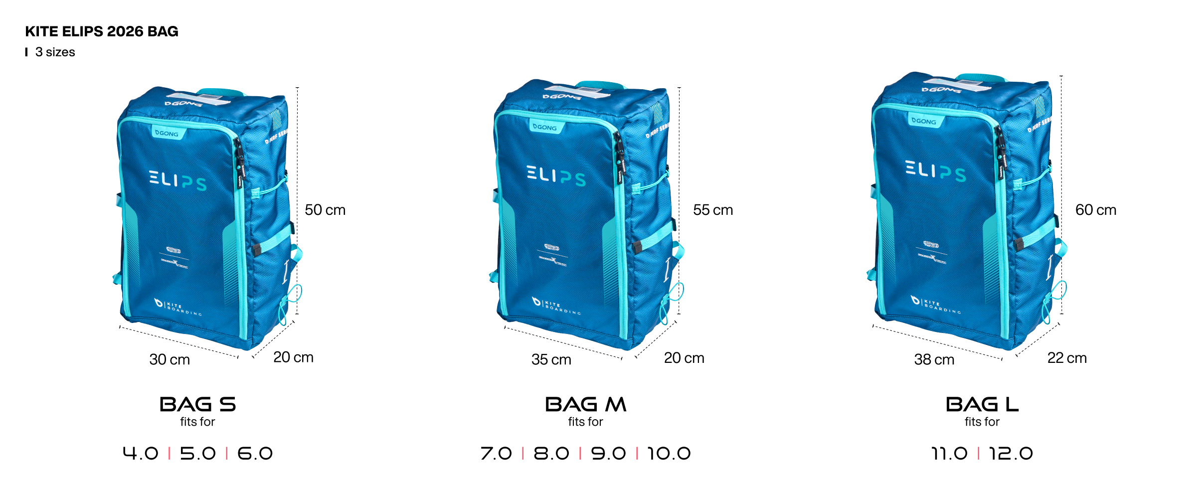Les recommandations ci-dessus sont basées sur le comportement des ailes de kite GONG. Nos barres étant compatibles avec un grand nombre de kites, vous pourrez adapter le choix en fonction du type d’aile utilisé.