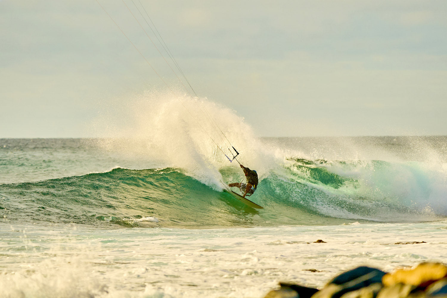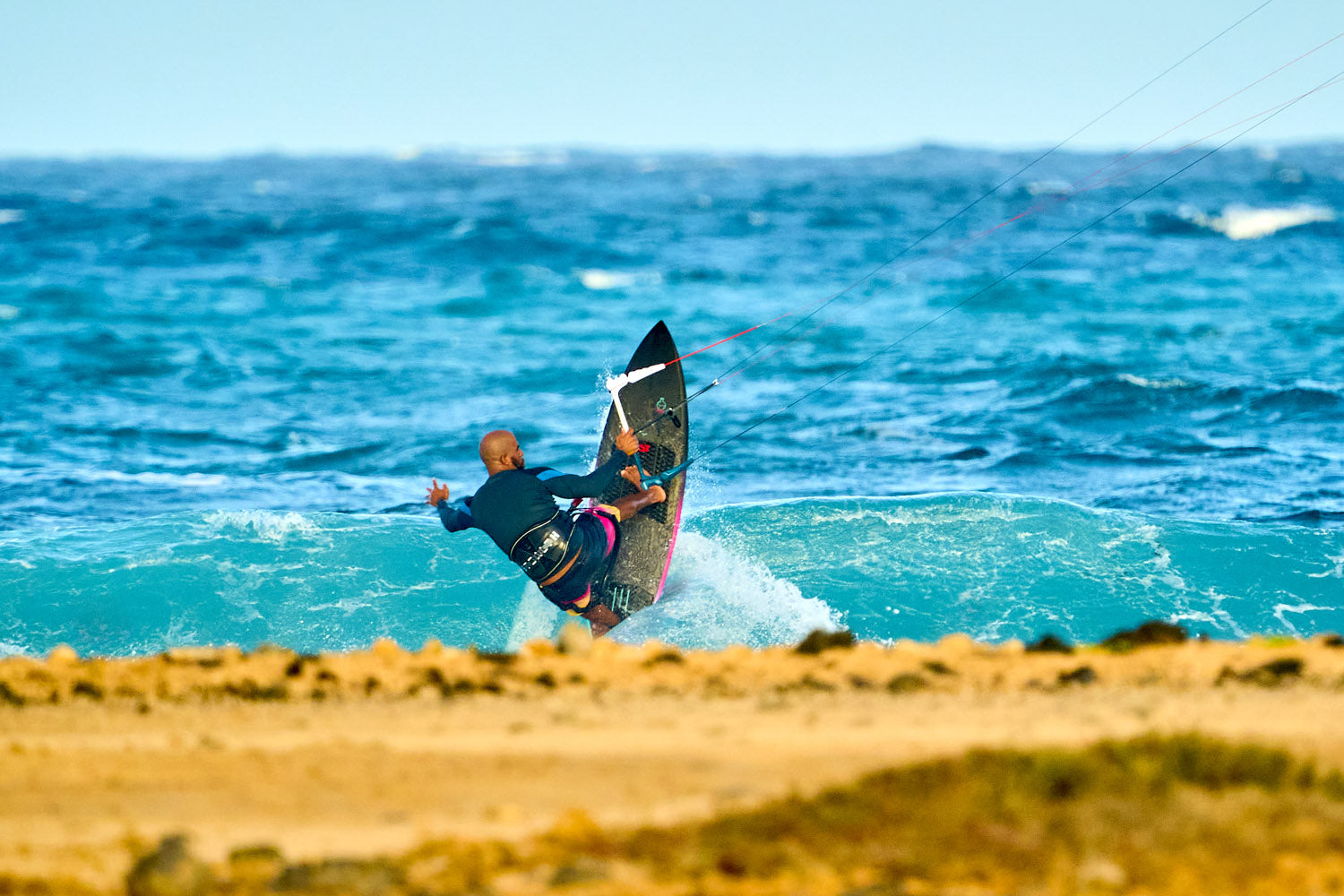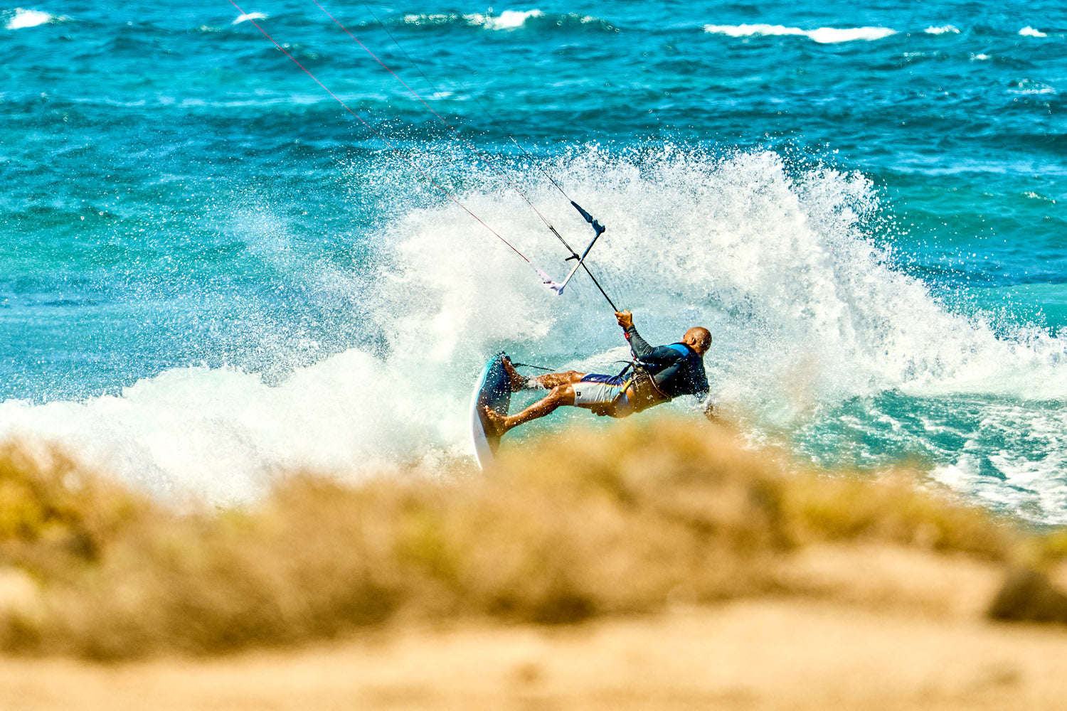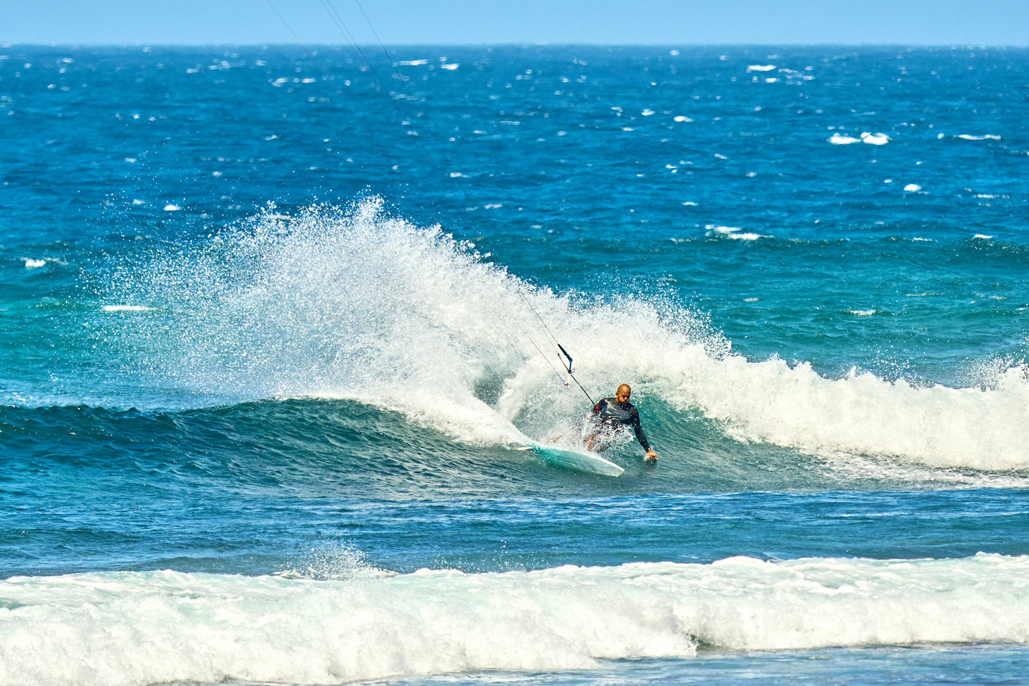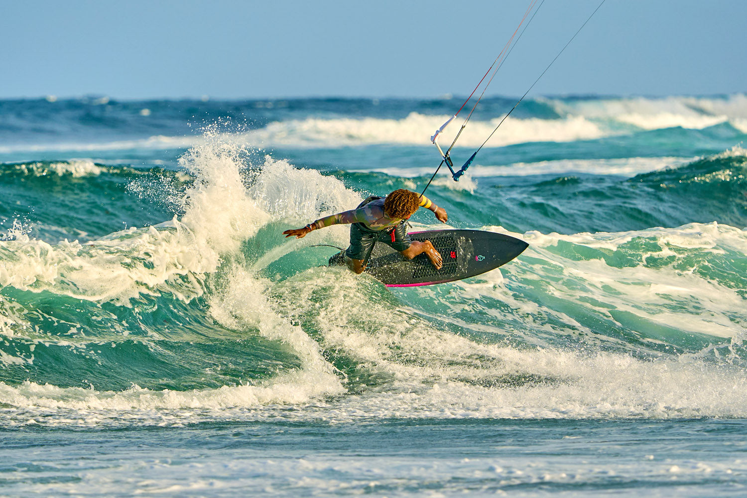 Cette disponibilité de la puissance, combinée au bridage qui permet de dégazer instantanément, donne un contrôle remarquable dans toutes les configurations de vagues (on shore, side, spots rafaleux, zones déventées).