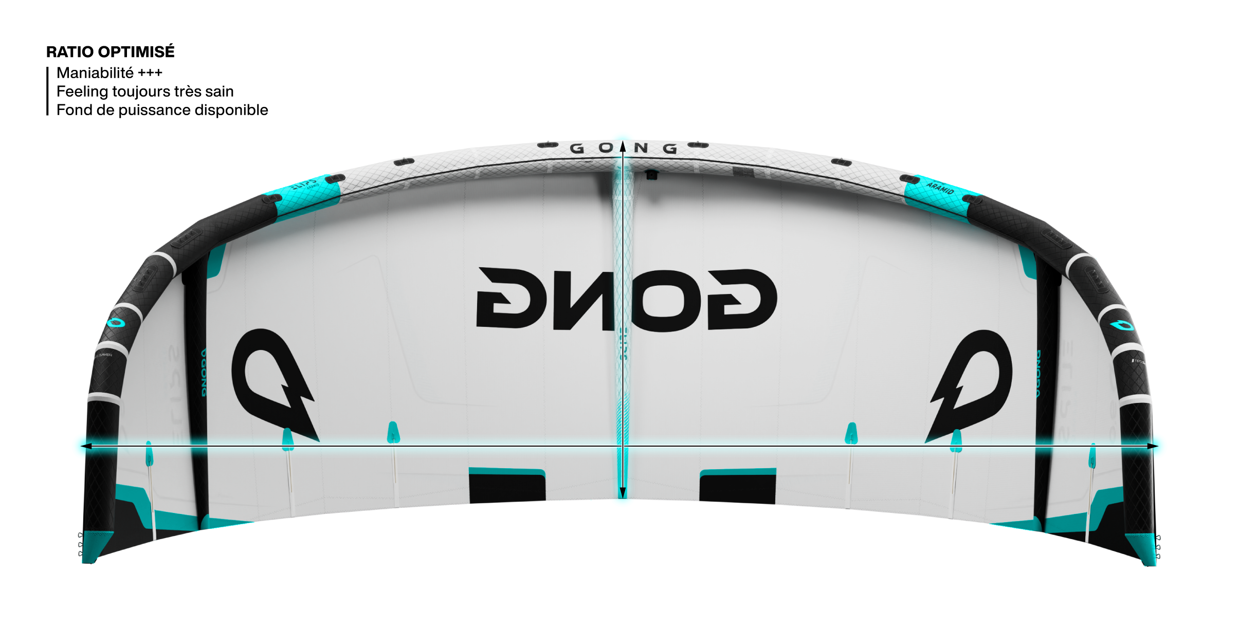 - Ratio modéré ++ car désormais à 5,0 (vs 4,5) : plus de glisse, plus de vitesse quand on le souhaite, tout en gardant un feeling très sain et linéaire dans toute la fenêtre. Avec sa surface recentrée, elle reste hyper stable au zénith, conserve un super drift et rattrape beaucoup d’erreurs. On gagne un kite qui s’extrait vite de la zone de puissance si on le souhaite et qui y retourne immédiatement à la demande. Une vraie mobilité dans la fenêtre de vol qui favorise le surf.