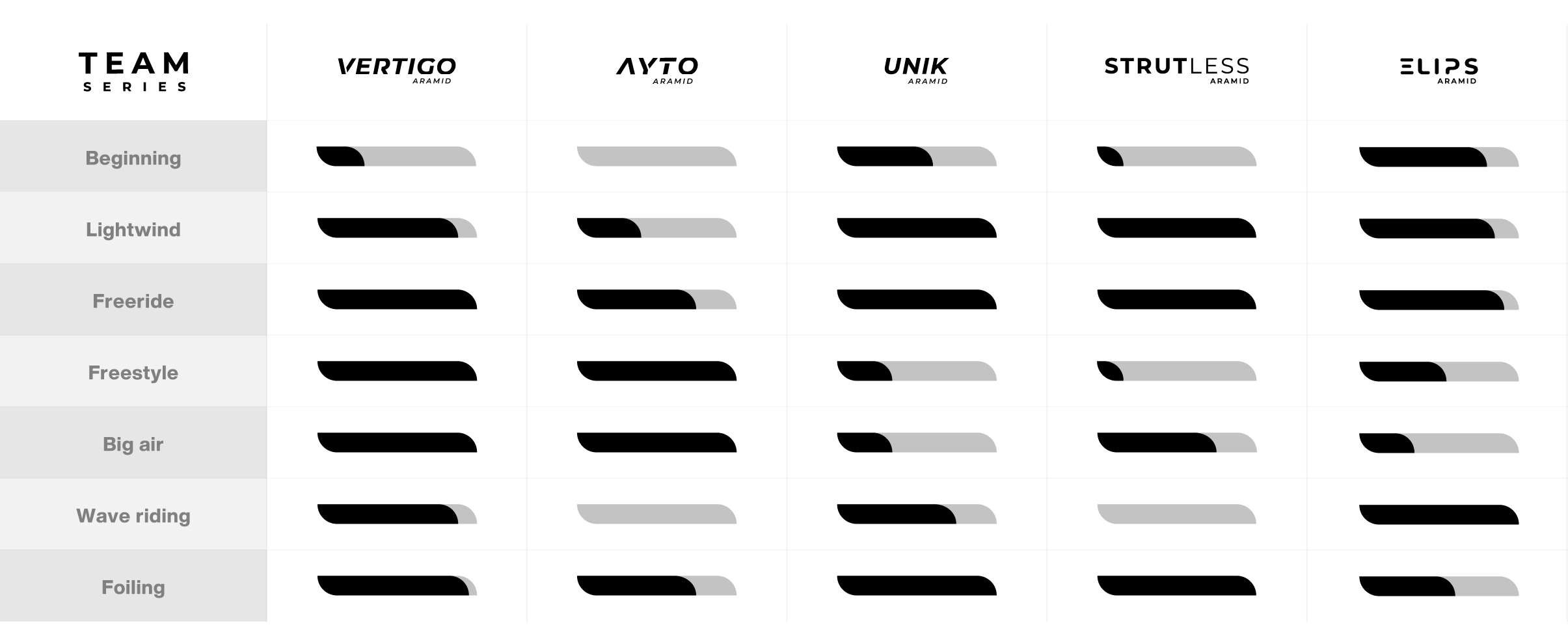 Ce ratio plus élevé exploite pleinement les bénéfices de l’Aramid : le kite garde sa finesse en rotation, s’avance mieux dans la fenêtre et oppose une surface utile plus efficace dans les phases de drift. C’est ce qui rend la Elips 2026 Team aussi “posée” dans l’air, même dans les sections déventées.