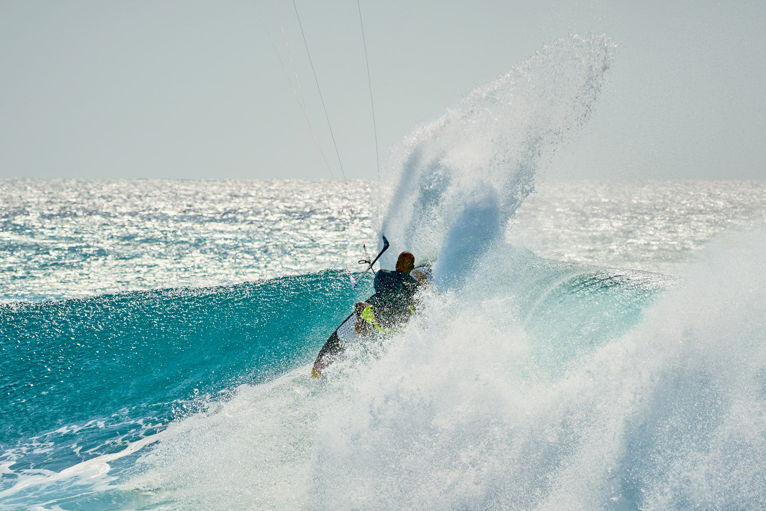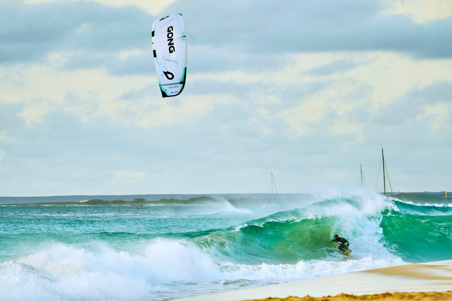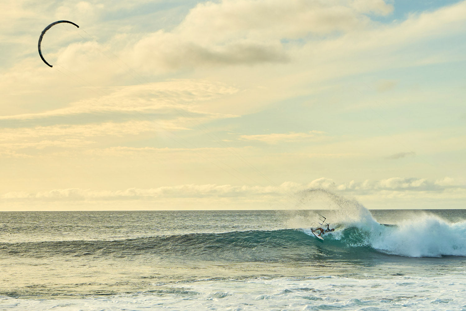 Cette rigidité supplémentaire se ressent particulièrement dans les vagues : aucune déformation parasite du bord d’attaque lorsque l’aile est choquée down-the-line ou lorsqu’elle prend une rafale dans une section creuse. Le pilotage reste parfaitement propre, même dans les phases où le rider ne regarde plus son kite.
