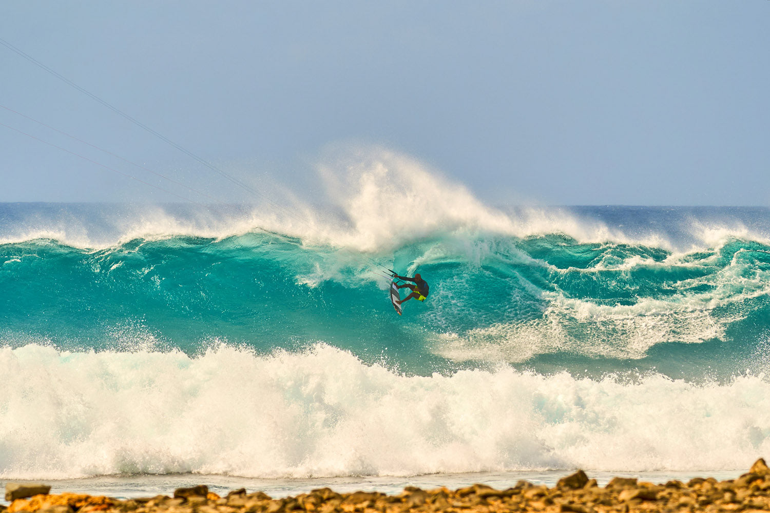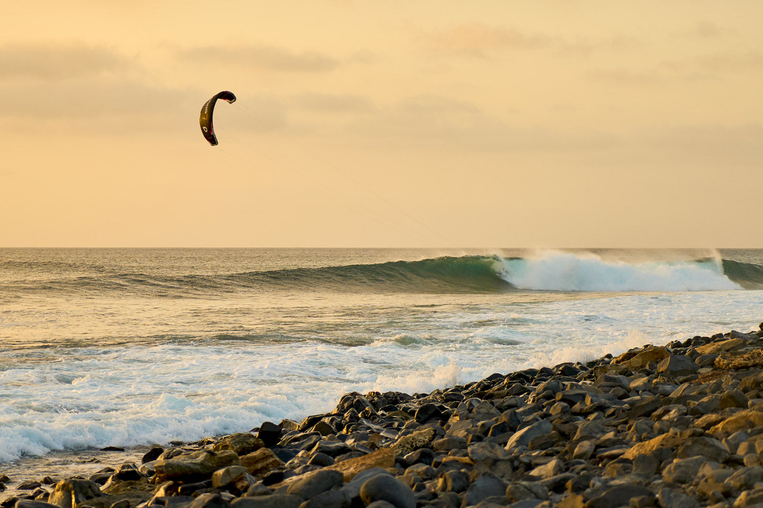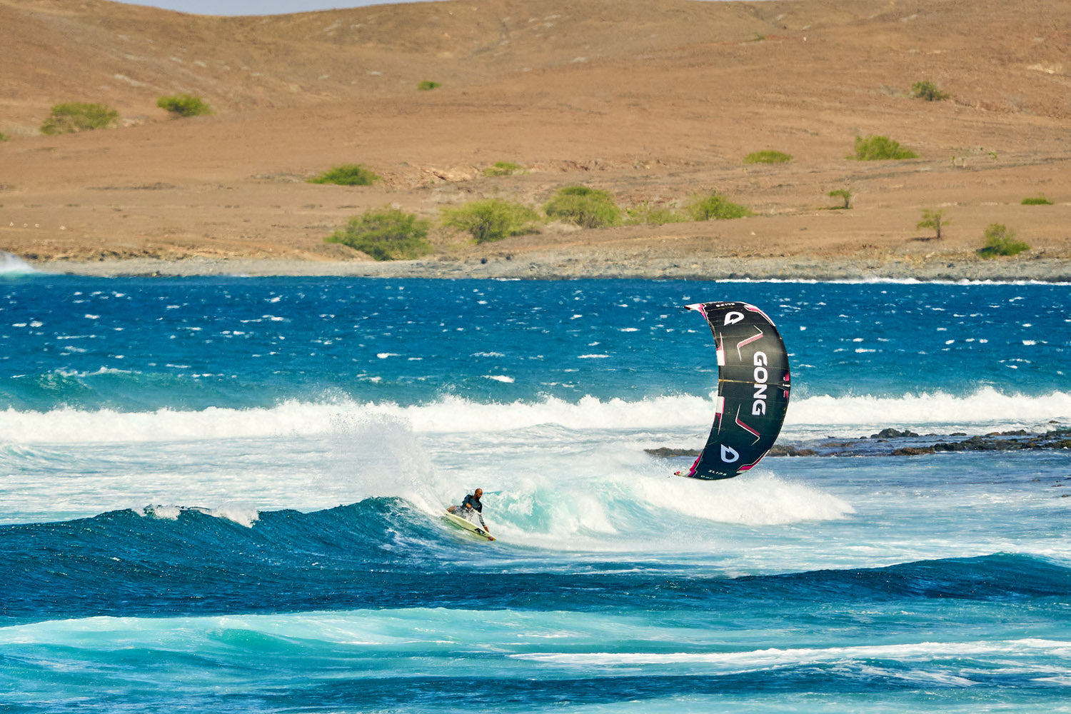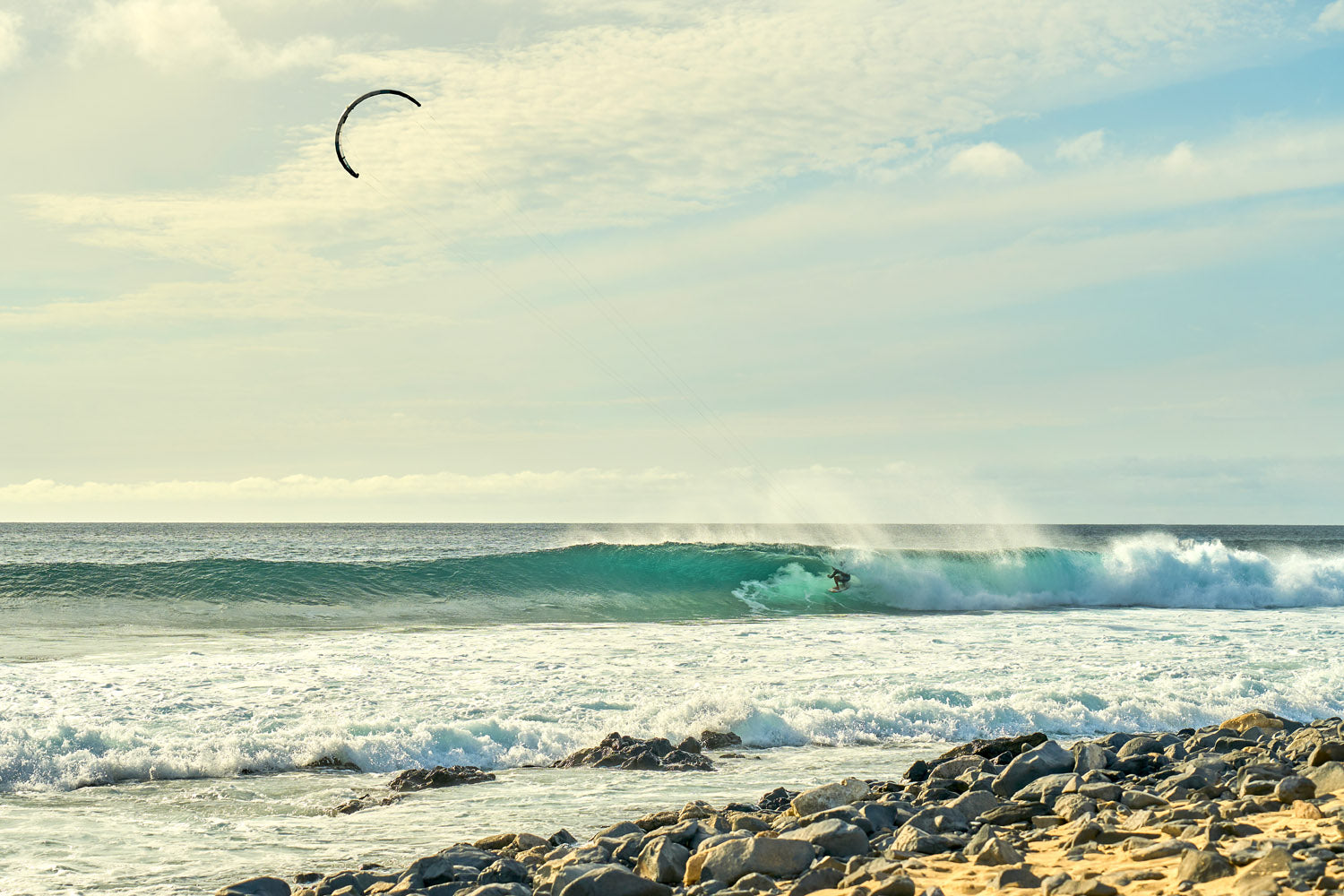 Cette rigidité supplémentaire se ressent particulièrement dans les vagues : aucune déformation parasite du bord d’attaque lorsque l’aile est choquée down-the-line ou lorsqu’elle prend une rafale dans une section creuse. Le pilotage reste parfaitement propre, même dans les phases où le rider ne regarde plus son kite.