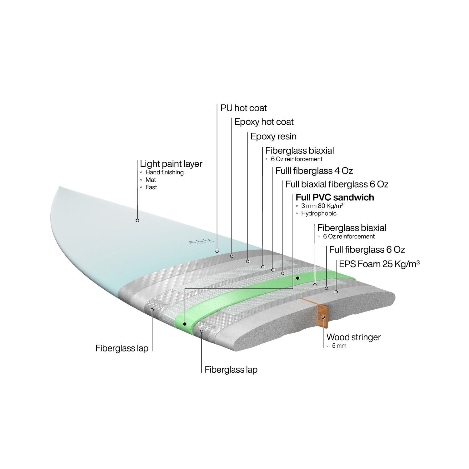 Un tail ultra large avec un profond concave pour porter et rester très manœuvrant même à basse vitesse.