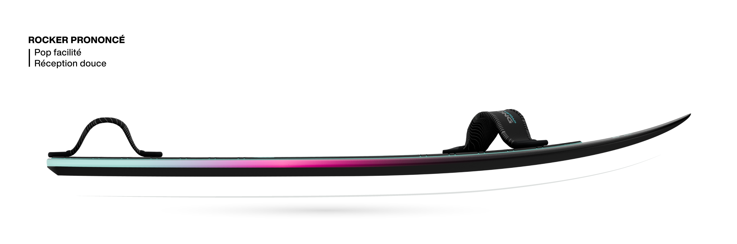 Le nose rocker très prononcé de la Rumble facilite les repops et garantit des réceptions douces et sans faute. C’est la garantie d'enchaîner les tricks sans se soucier du plan d’eau et des landings.