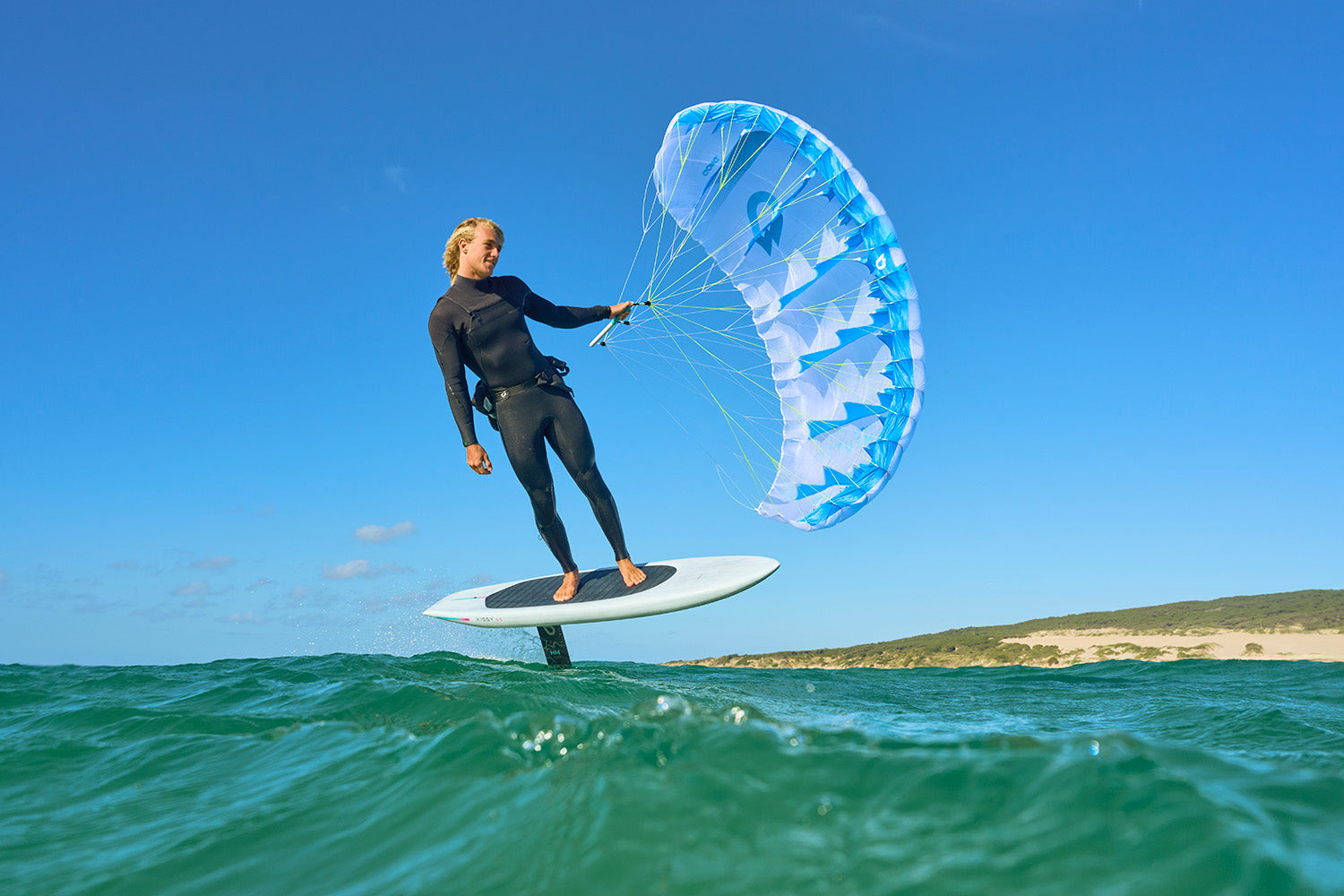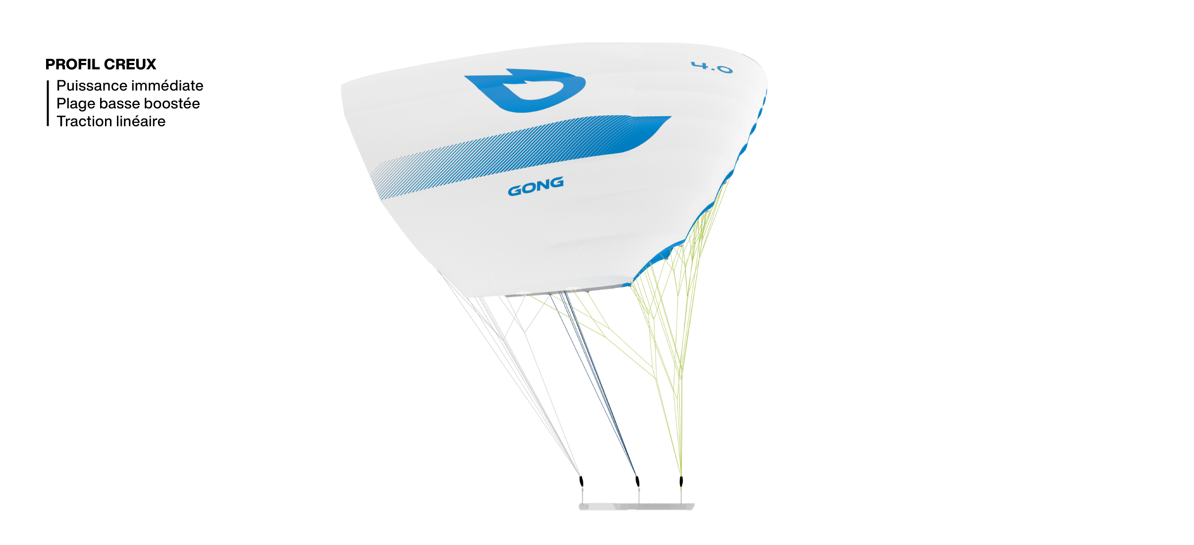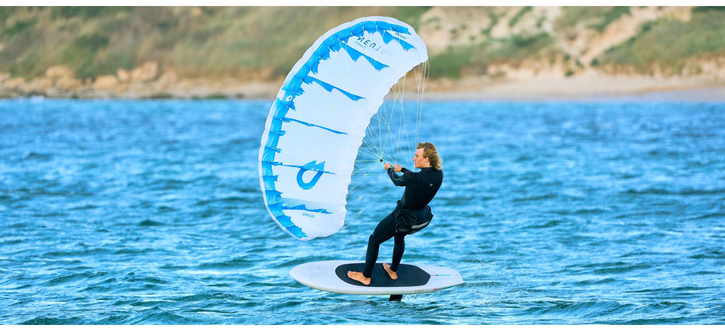 Son bridage allongé améliore encore la maniabilité en éloignant l’aile de l’eau, réduisant ainsi le risque de touchettes intempestives et offrant un maximum de liberté dans le placement de l’aile.