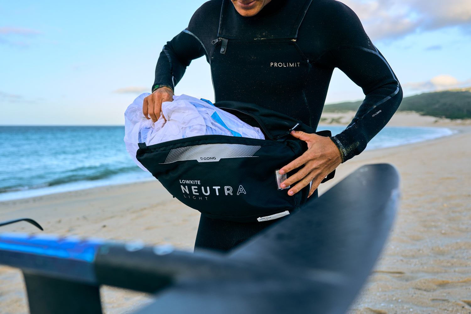 Le lowkite Neutra Light avec un sac de transport robuste, conçu pour simplifier chaque session et chaque déplacement. Sa large ouverture permet de ranger l’aile rapidement sans plier ni contraindre les raidisseurs en nylon du bord d’attaque. Le volume optimisé permet également d’emporter un second lowkite en toute sécurité, idéal pour s’adapter aux variations de vent.