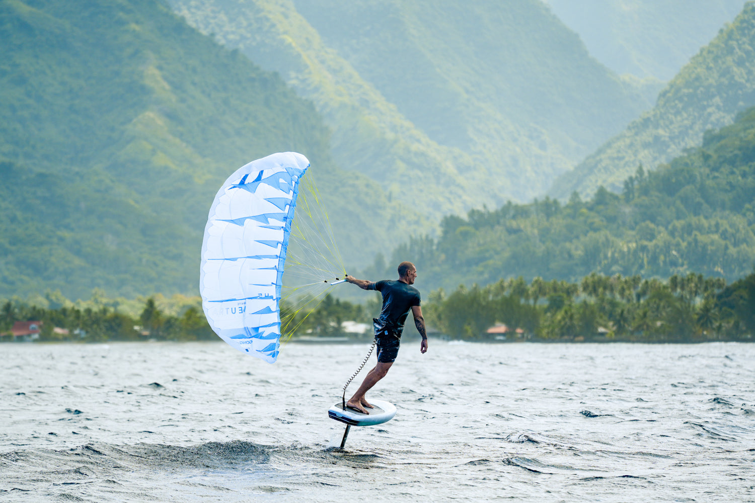 Le profil creux, parfaitement lisse et calé au cœur de son outline, permet à la Neutra Light de générer une traction instantanée dès le moindre souffle, sans jamais pénaliser la maniabilité. Les oreilles affinées et le travail global sur la structure renforcent encore cette réactivité tout en conservant une aile vive et précise. Le décollage est rapide et demande très peu d’effort, limitant fortement le pomping. Les optimisations sur le profil et sa tenue permettent de garder une puissance propre et constante, même en étant sous-toilé. Sur l’eau, les départs deviennent simples et fluides, avec une traction linéaire et confortable. Cela ouvre l’utilisation à des planches et des foils plus petits, tout en conservant un excellent rendement en conditions light.