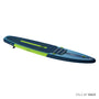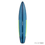 En race, on apprécie sa glisse propre aux planches gonflables, toute en fluidité, qui est surboostée par son outline étroit. Son rocker quasi constant et sa faible largeur permettent d’avoir une vitesse maximum. Grâce à son volume suffisamment important et son tail large, elle reste simple à la rame et efficace dans les phases de relance. Si vous souhaitez augmenter le rythme, son shape profilé accélérera sans soucis. Côté manœuvrabilité, enrouler une bouée avec son tail large est facile, tout comme surfer la houle en downwind ou les vagues au bord. Tail large plus edge de rail semi rigide : la recette du drive maîtrisé ! Dans des conditions plus difficiles, son point nose pointu permet de passer le clapot sereinement.