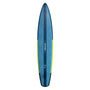 En race, on apprécie sa glisse propre aux planches gonflables, toute en fluidité, qui est surboostée par son outline étroit. Son rocker quasi constant et sa faible largeur permettent d’avoir une vitesse maximum. Grâce à son volume suffisamment important et son tail large, elle reste simple à la rame et efficace dans les phases de relance. Si vous souhaitez augmenter le rythme, son shape profilé accélérera sans soucis. Côté manœuvrabilité, enrouler une bouée avec son tail large est facile, tout comme surfer la houle en downwind ou les vagues au bord. Tail large plus edge de rail semi rigide : la recette du drive maîtrisé ! Dans des conditions plus difficiles, son point nose pointu permet de passer le clapot sereinement.