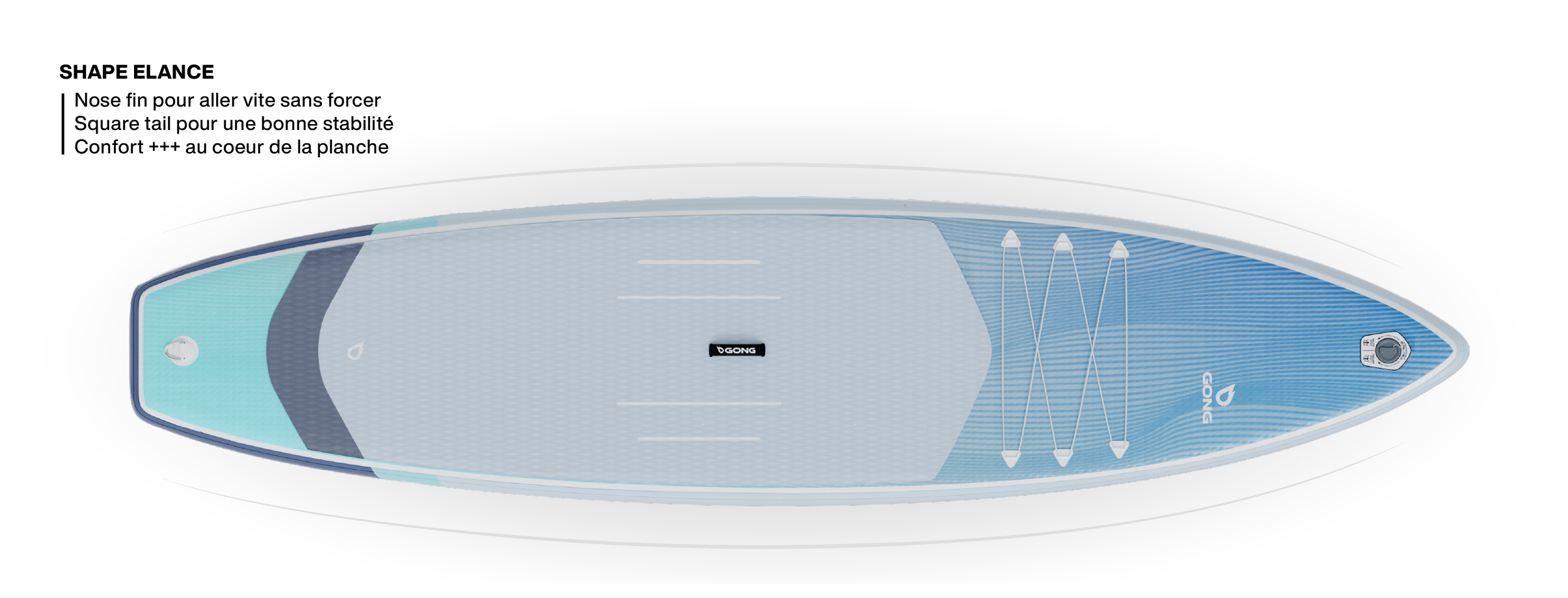 Le SUP First Cruising est équipé d’un boîtier central US Box, le standard incontournable des dérives haut de gamme. Sachant que la dérive conditionne à 50 % la performance d’une board, GONG a choisi ce système précis et polyvalent pour ses SUP gonflables.