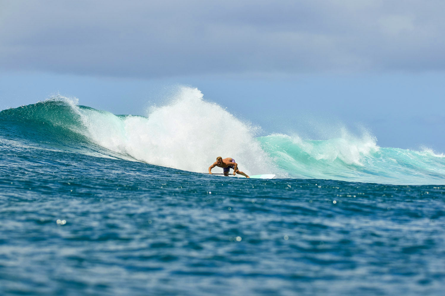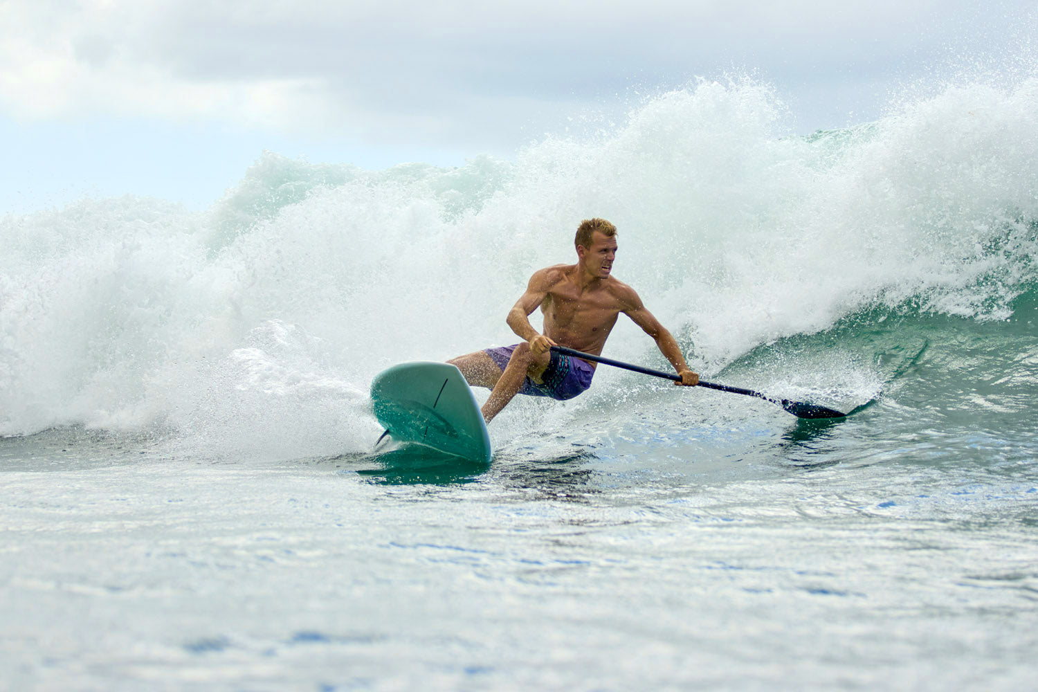 Le concave au centre de la planche donne beaucoup de stabilité à la rame et d’accélération au bottom.