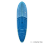 La carène est particulièrement travaillée, en lien avec tous les autres paramètres. Une belle cuillère au nose pour porter, alléger et stabiliser. Le concave au centre de la planche donne beaucoup de stabilité à la rame et d’accélération au bottom. Le double concave devant les dérives latérales distribue l’eau sur ces dérives dédiées à l’accélération et crée un Vé central comme point de bascule rail to rail. Enfin, le tail termine en Vé prononcé pour affirmer le rail to rail et libérer la board dans les courbes.