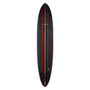 - Outline : un beau round pin tail pour allier courbes et vitesse, un maître bau relativement mince et avancé pour la stabilité à haute vitesse, et un nose suffisamment porteur pour partir de loin.
