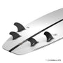 Vous avez le choix entre deux montages, thruster ou quad. Le thruster est top sur des vagues avec peu de pente et au déferlement relativement lent, ce montage vous permet de davantage travailler la vague, d’enchainer les turns et de passer d’un rail à l’autre plus facilement.