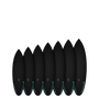 Significant but conventional rocker for a performance shortboard. Sufficiently pronounced at rocker’s start to avoid the slightest fault at the end of a top turn. The rocker remains constant all the way to the tail exit for the best possible maneuverability and strong curves. Rocker is both constant and well-balanced between nose and tail.