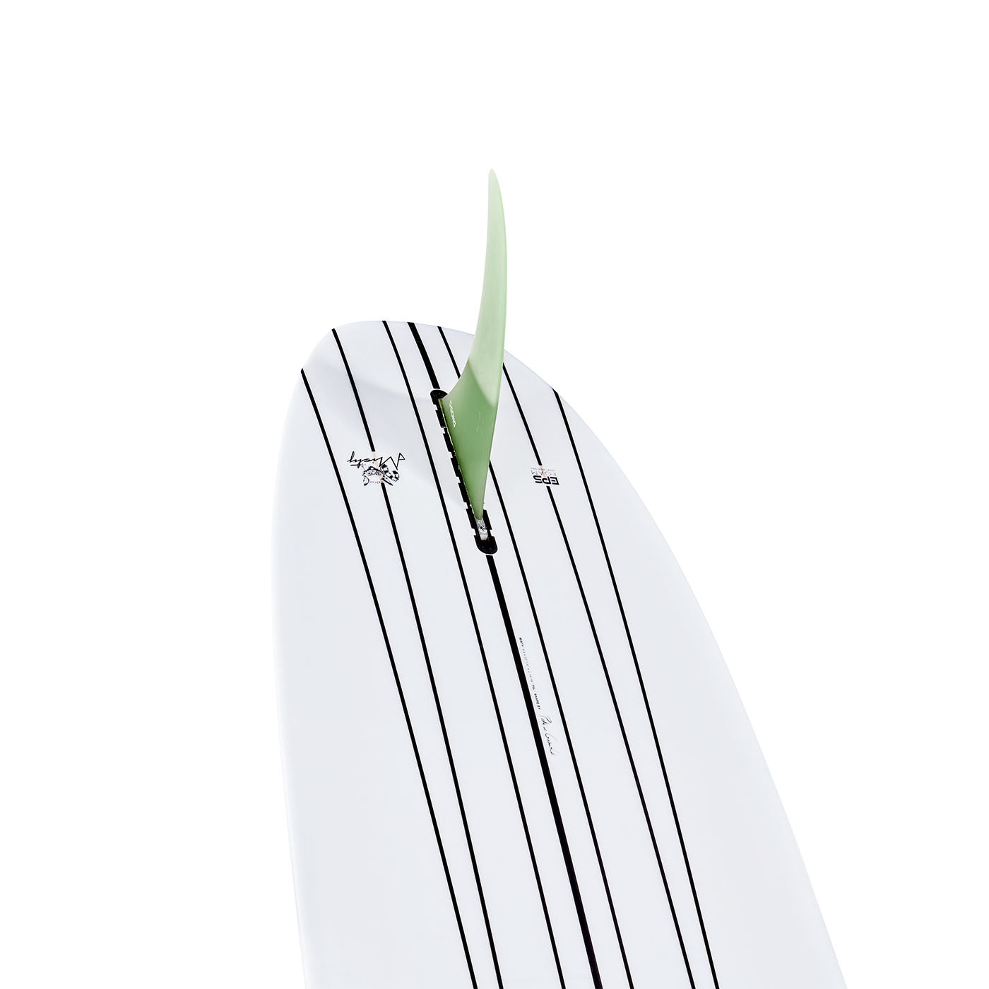 - Un single fin (10” à 11”) est recommandé, avec une base généreuse pour assurer un maximum de contrôle et de stabilité lors des noserides. Il risque de brider la vitesse et la mobilité malgré tout.
