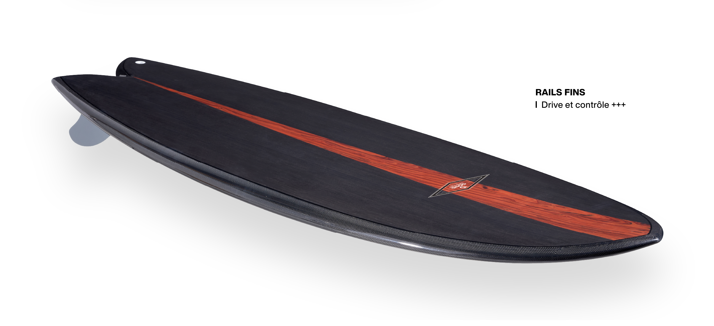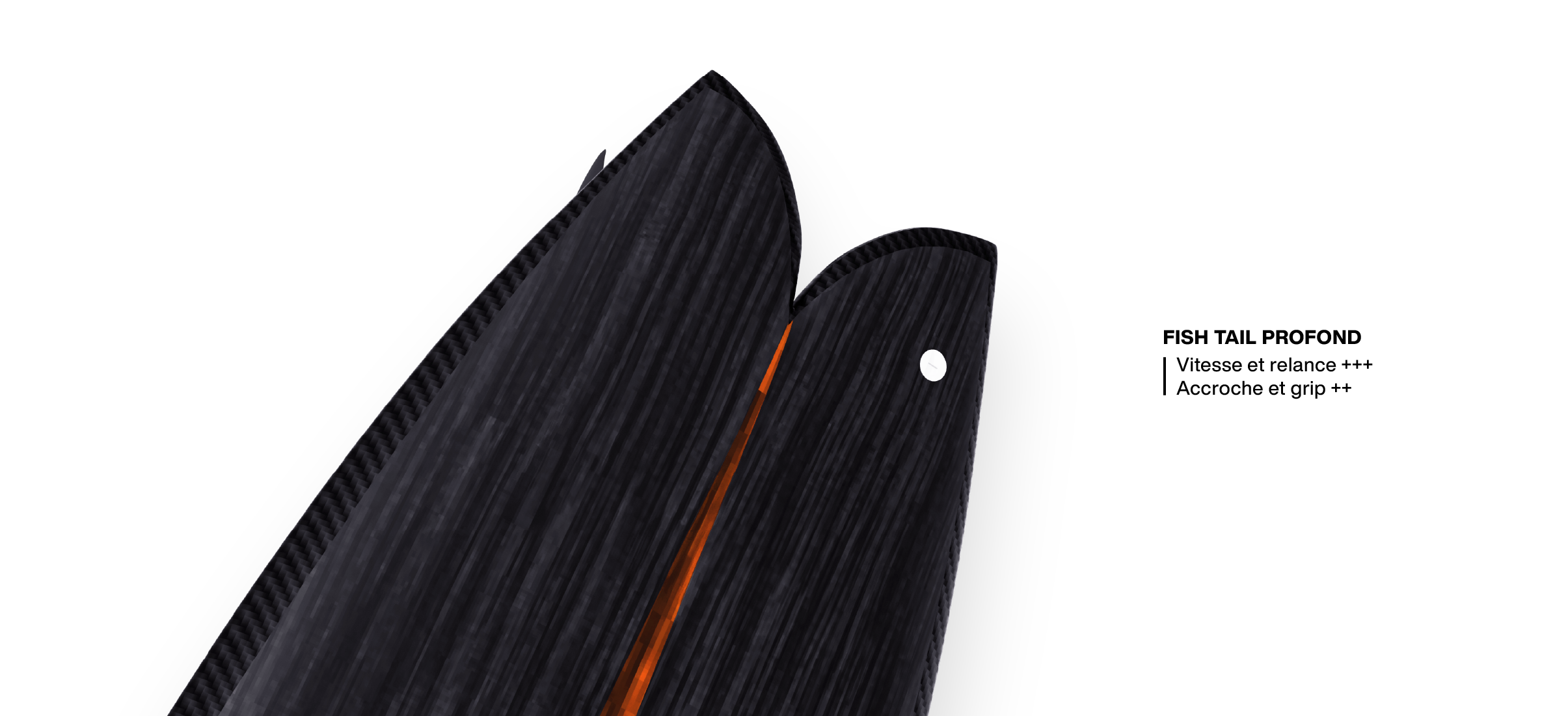 • Tail : Fish tail profond pour planner tôt sans grèver la maniabilité.