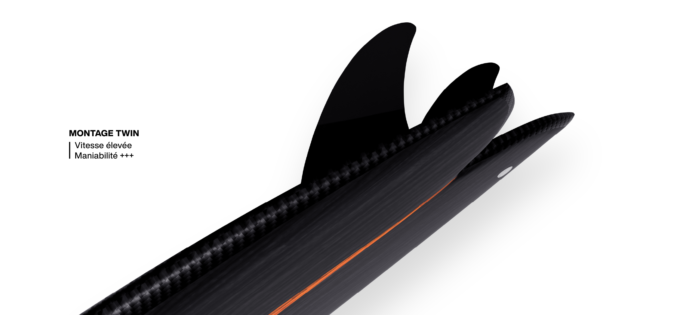 • Dérives : twin fin de 5’6 à 7’11, quad pour la 9’0.