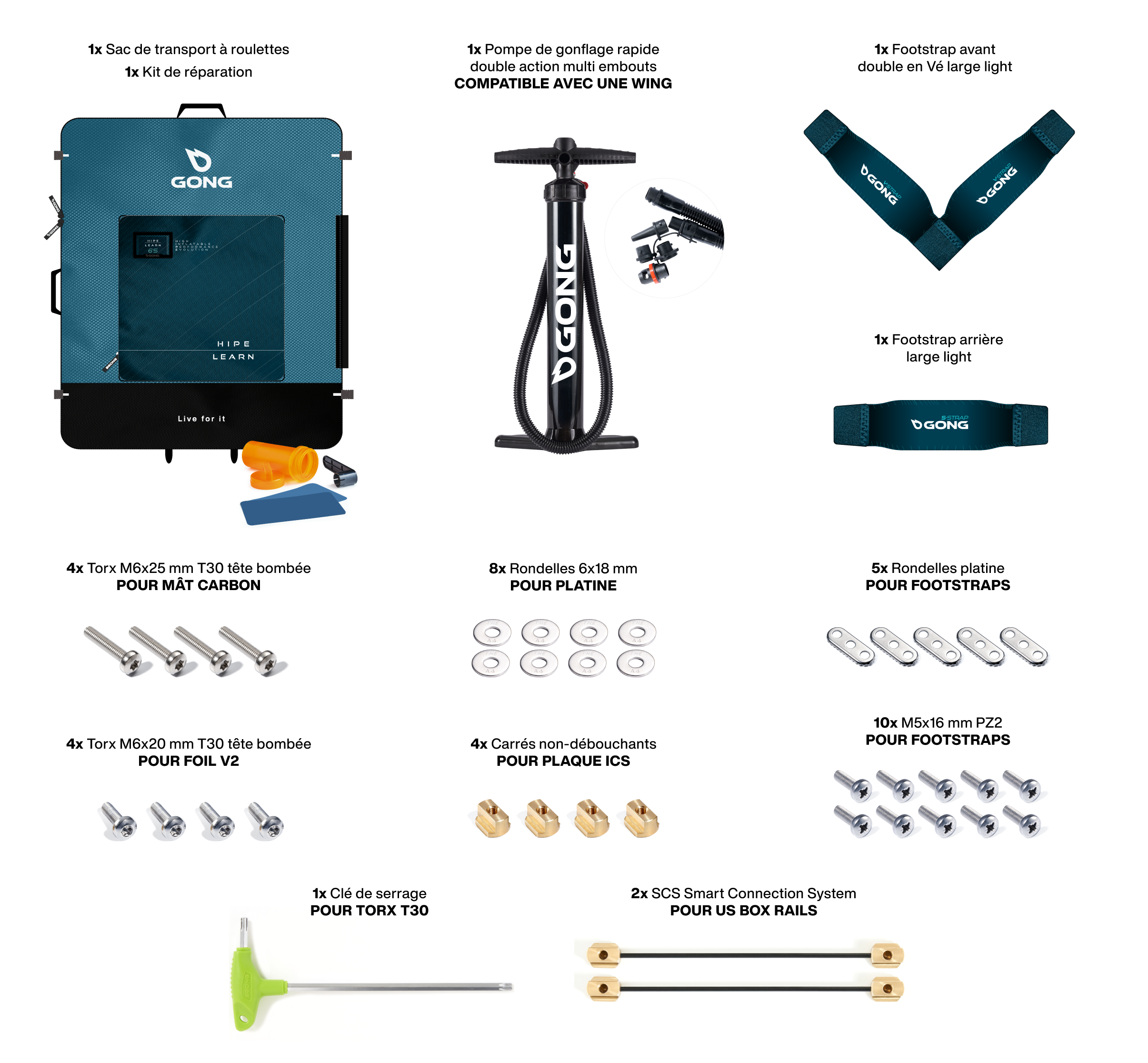 - GONG footstrap front V light 2024 (visserie incluse).