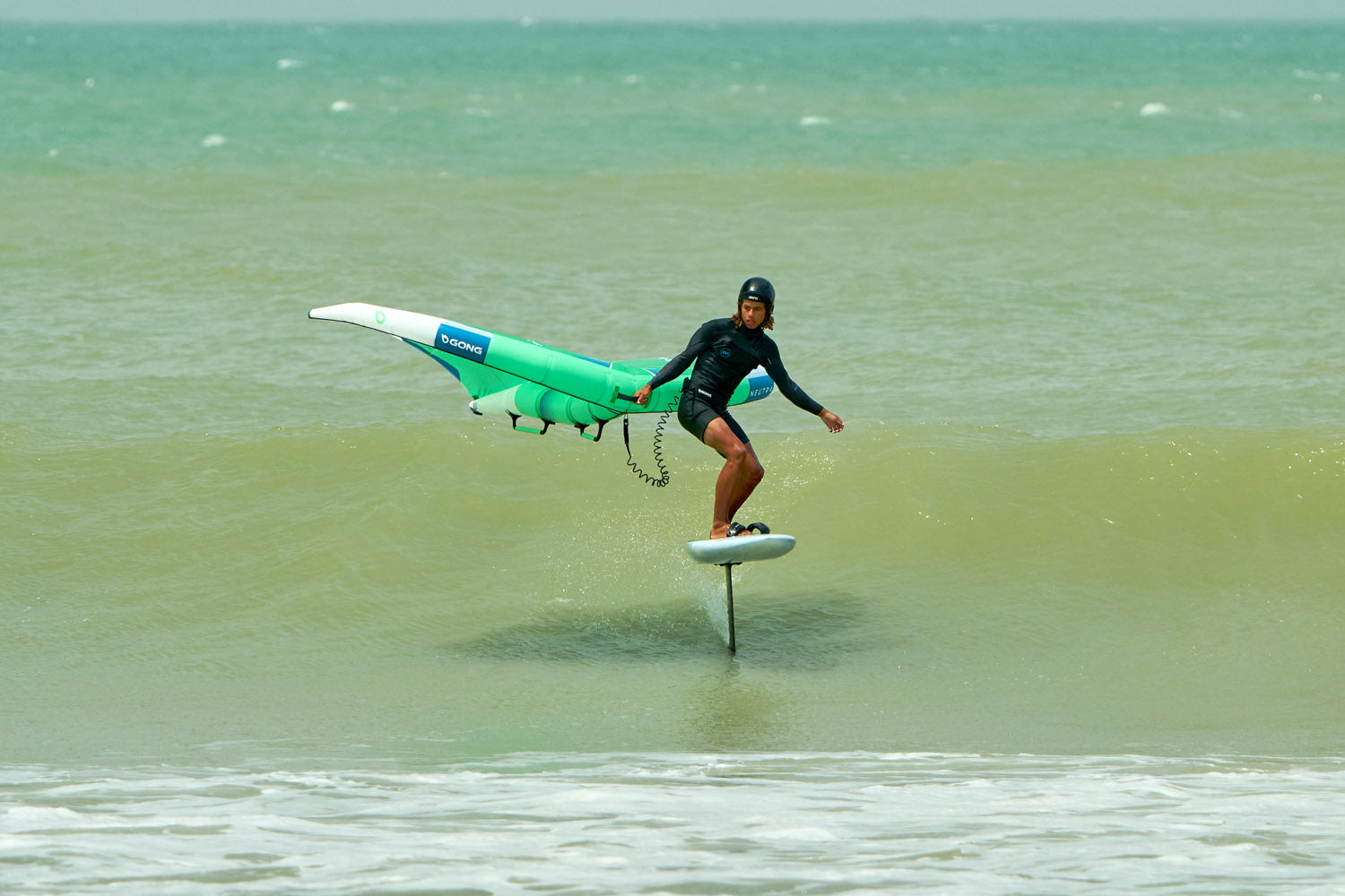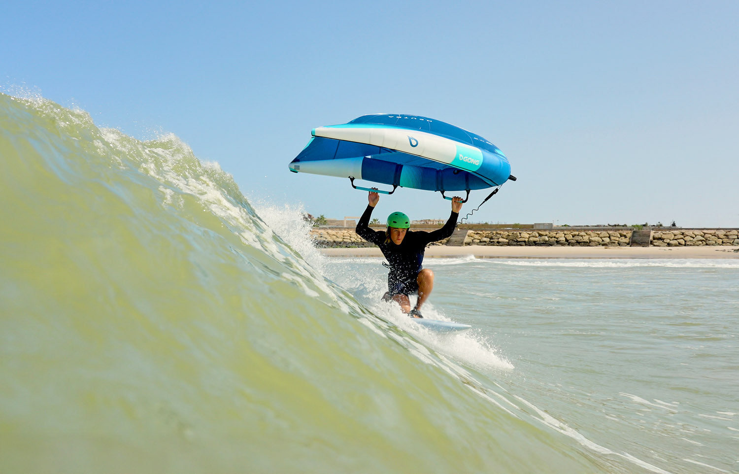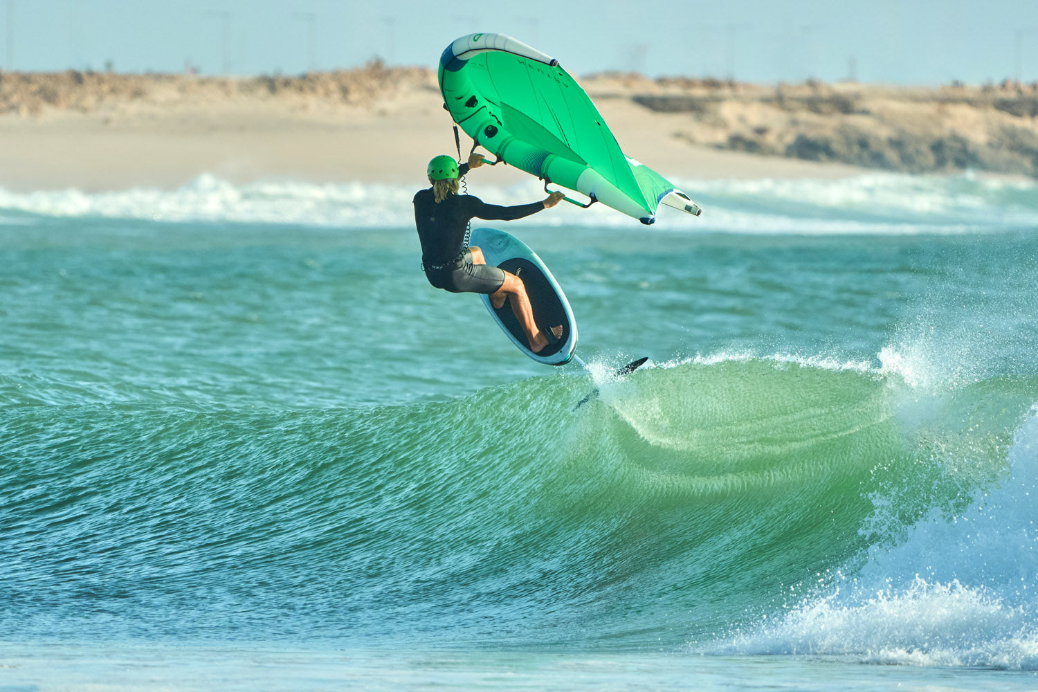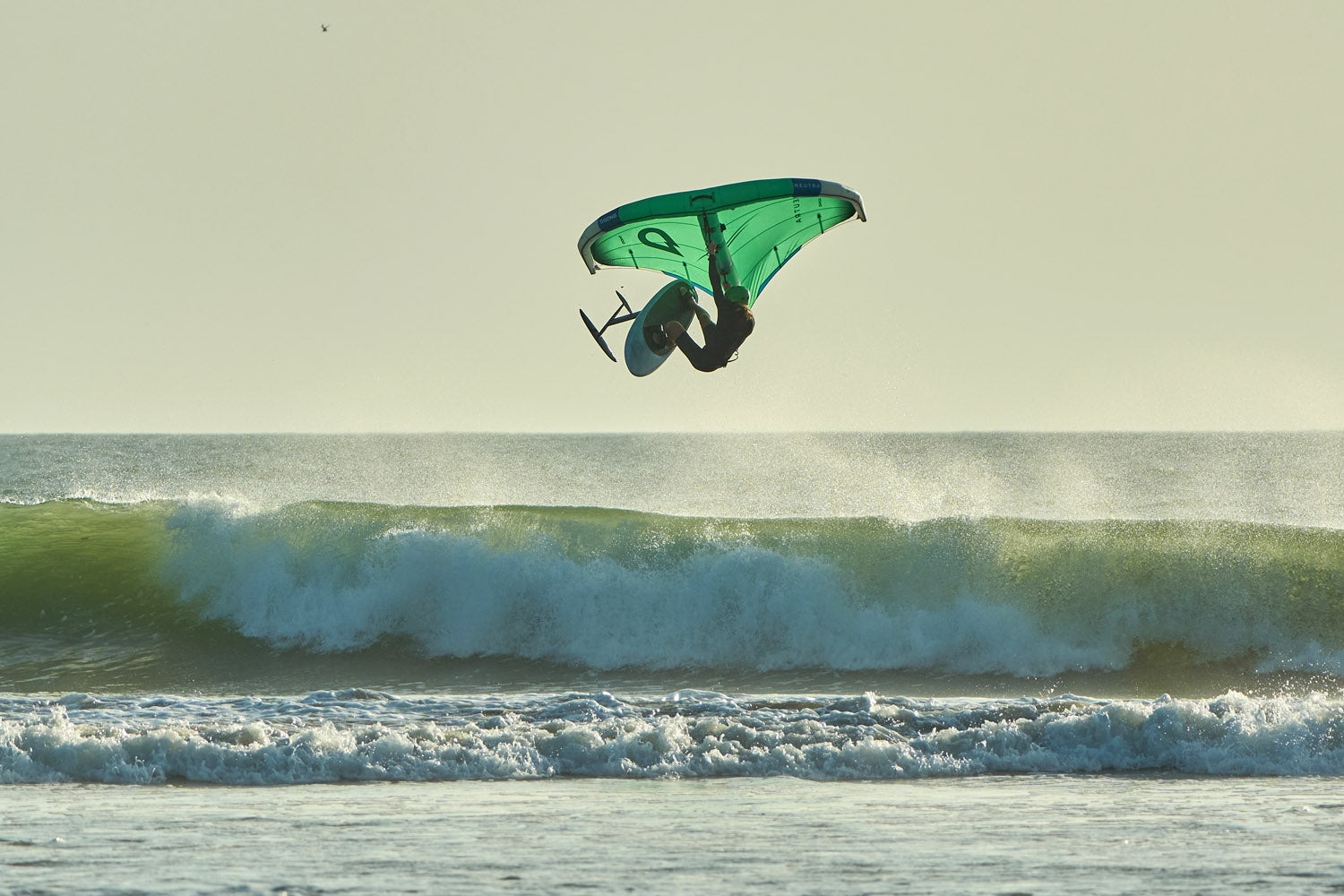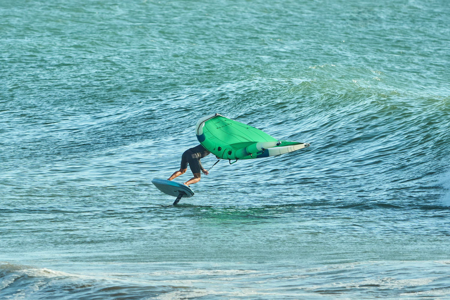 - Décollage entre deux vagues : sa légèreté facilite le pomping et permet un départ intuitif. Les tips rondes facilitent le retournement de la wing entre deux mousses.