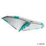La valve de gonflage sur le bord d’attaque est doublée sur la latte pour un dégonflage immédiat et un rangement compact. Toujours en one pump, on gonfle par le bord d’attaque uniquement en quelques secondes et on dégonfle aussi vite en dévissant les deux valves.