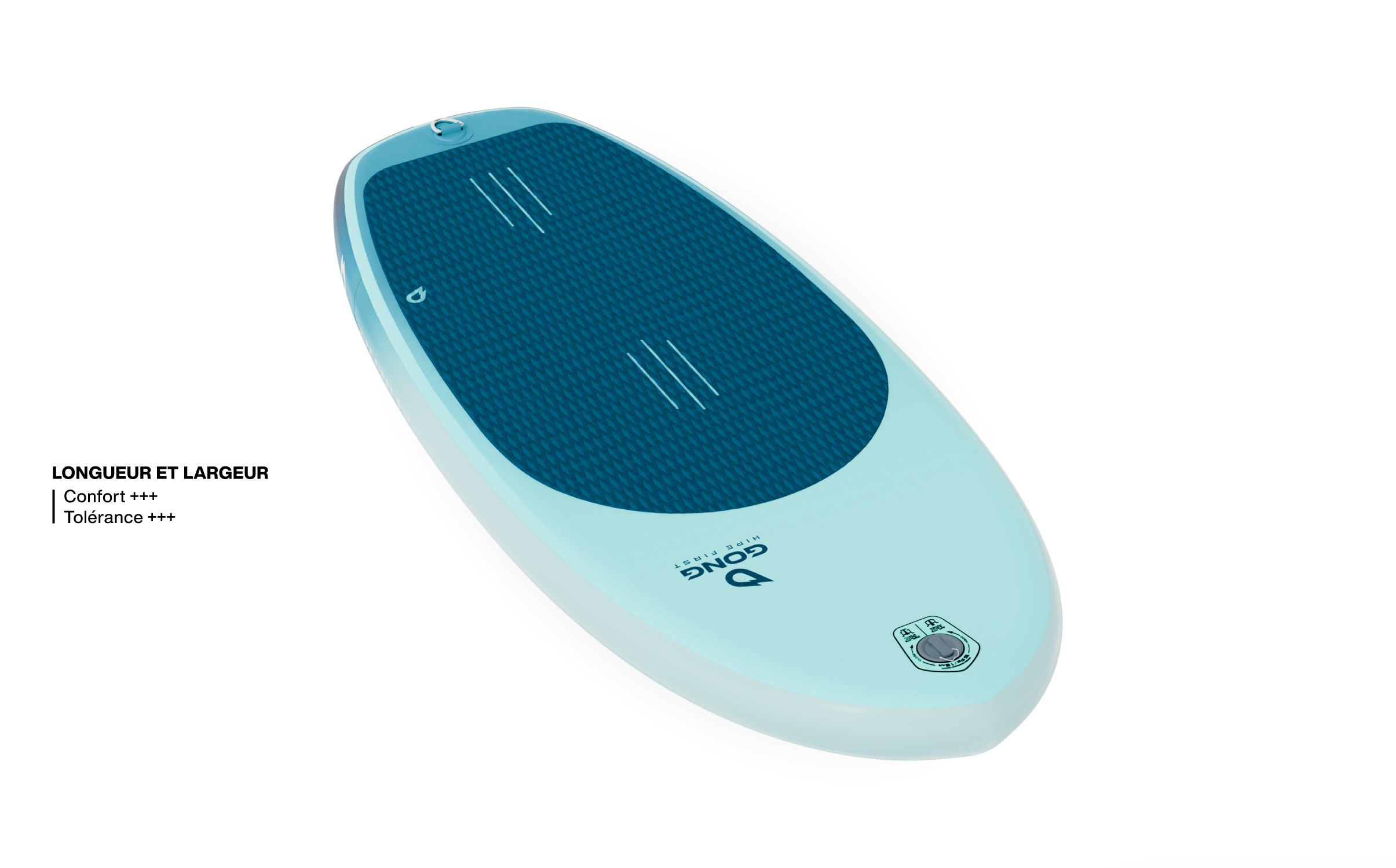 - Valve de gonflage haute pression sur le nose pour faciliter le dégonflage et le roulage de la planche.