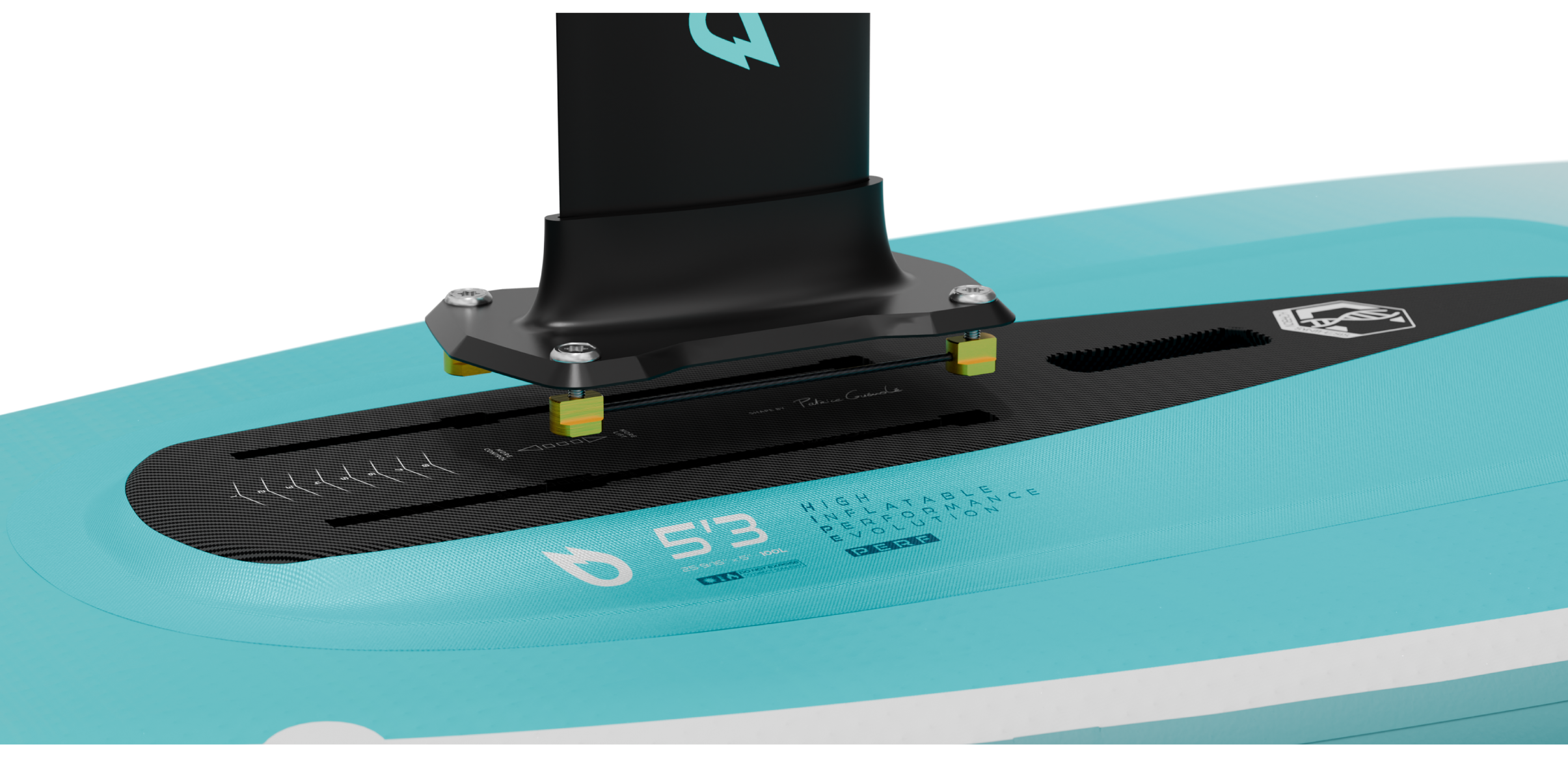Afin de faciliter le montage du foil, nos carrés US de fixation sont reliés par une tige en fibre de carbone et livrés avec la planche. On gagne du temps pour monter le foil et le réglage est précis. Fini le risque de perdre ses carrés : vous les laissez vissés sur la platine et vous les glissez dans les rails US par les 4 trous d’insertion. Plus rien à démonter : on a juste à serrer les vis et feu !!!