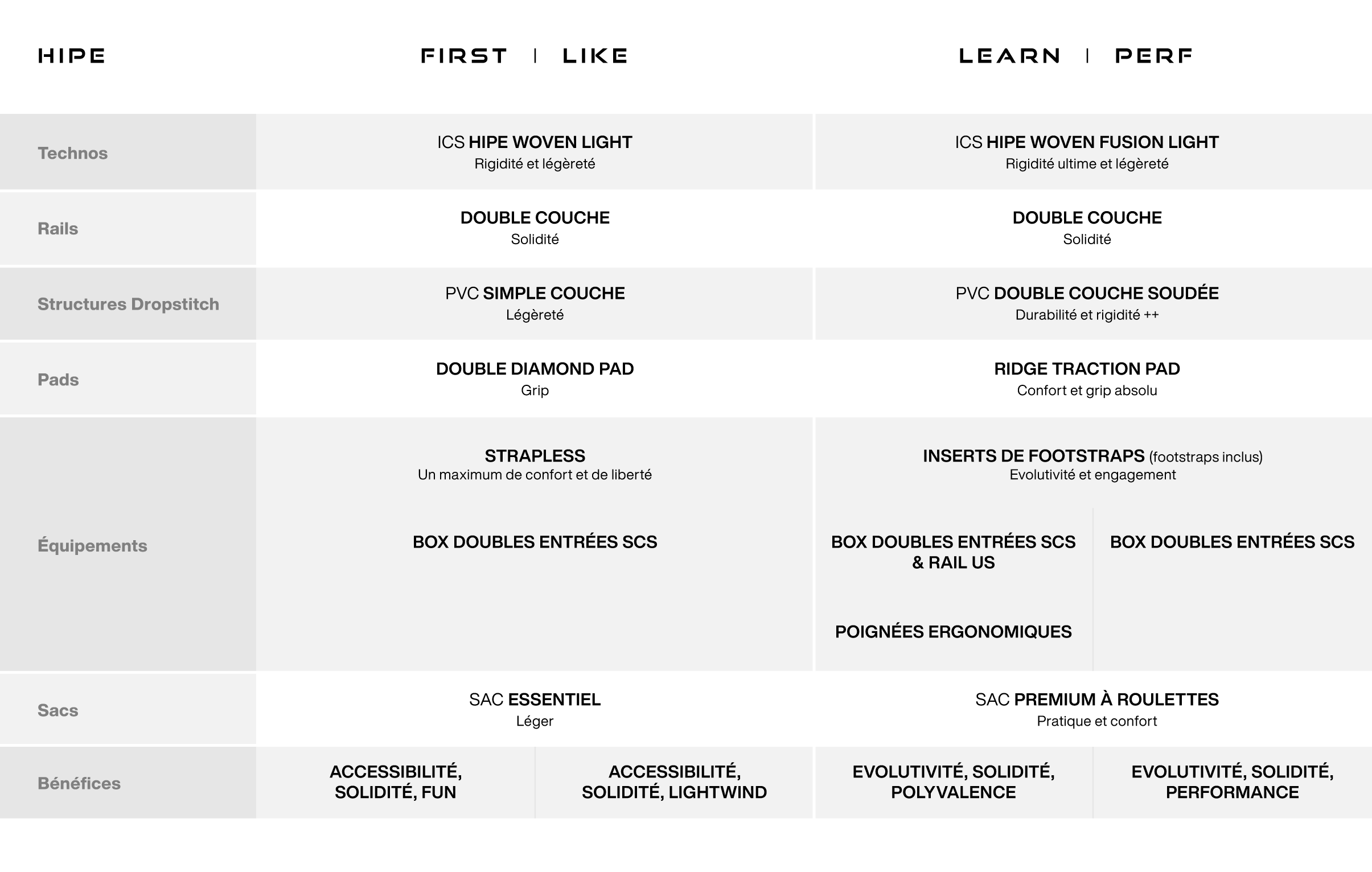 - HIPE PERF : le gonflable avec 95% des performances du rigide dans un shape facile et évolutif.