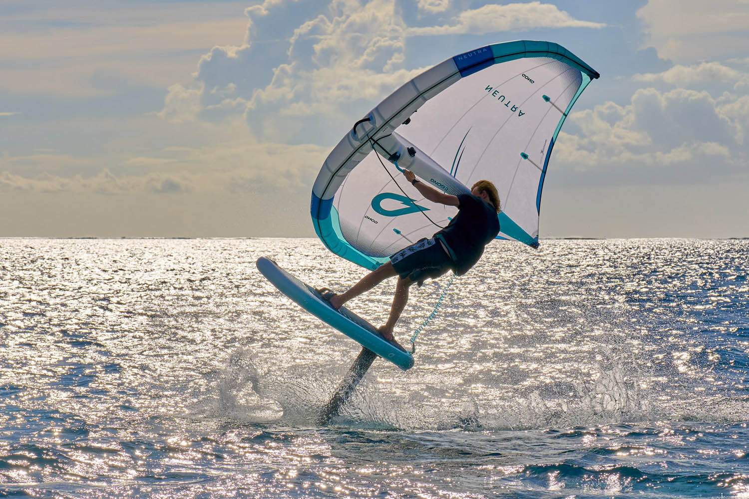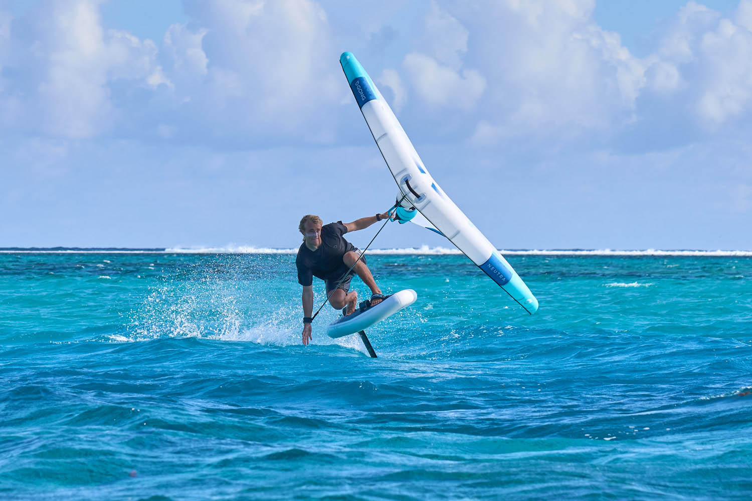 Pour améliorer le décollage, nos designers ont développé un rail rigide au tail de la board, directement inspiré du sharp edge au tail des planches de wing rigides. Il permet un détachement propre des filets d’eau en fin de carène, et donc une meilleure glisse avant de voler, dopant l’accélération.