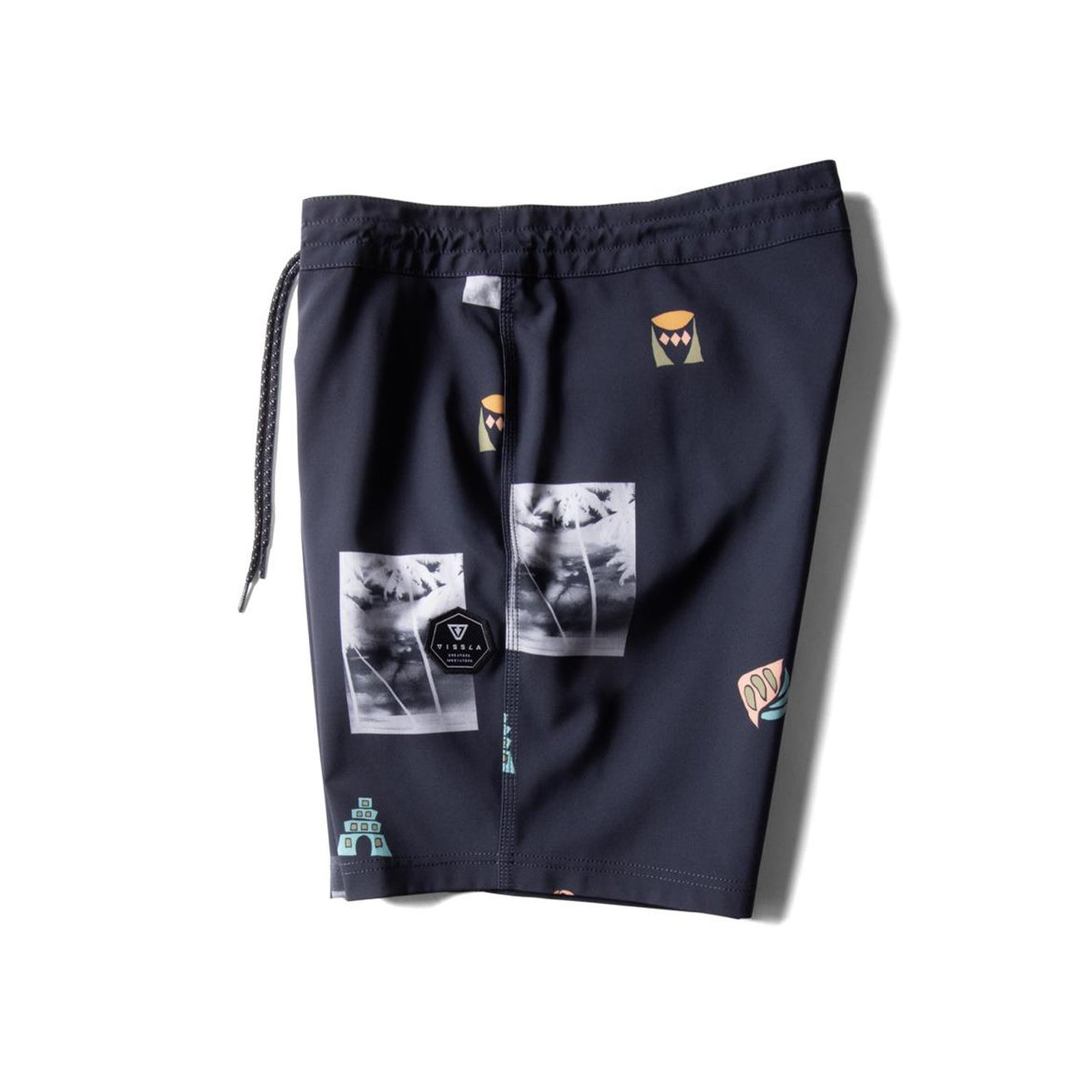 L'œuvre d'art prolifique de Vissla colore le profil minimaliste du Neu Wave Boardshort, un maillot de bain haut de gamme de 17,5 pouces dérivé d'un mélange parfait de polyester recyclé et de fibres de noix de coco.